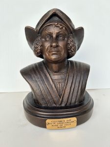 This year commemorates the 120th Anniversary of the original dedication of this Italian stone mason cut monument topped with a solid brass bust of Columbus; it is situated across the street from the sprawling Rawlings Library below –